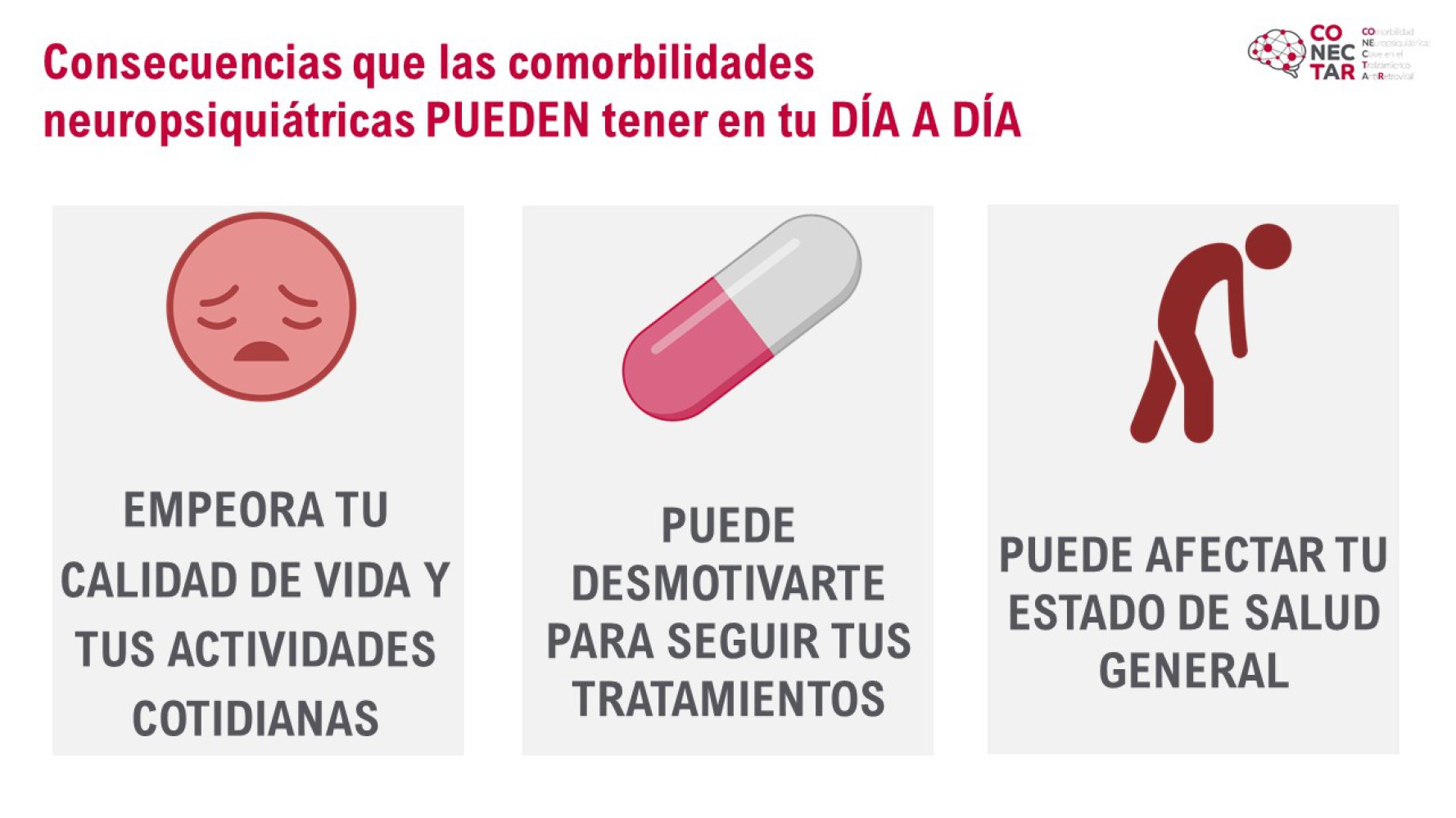 Las Comorbilidades Neuropsiquiátricas asociadas al VIH (incluido el deterioro neurocognitivo y los trastornos neuropsiquiátricos), son una importante fuente de preocupación en el cuidado de las personas con VIH debido a su alto impacto en la calidad de vida.